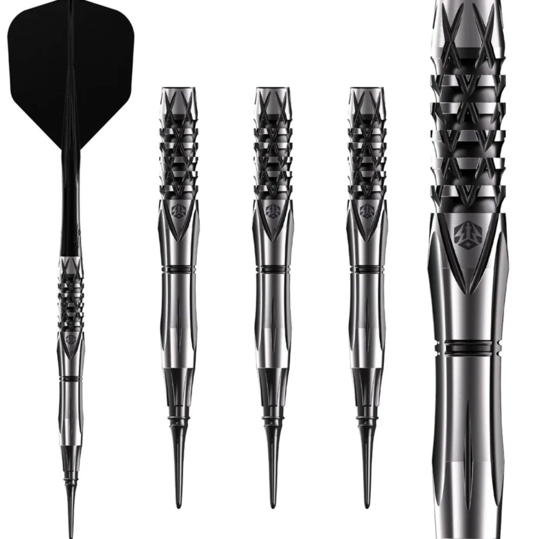 Miękkie rzutki Caliburn Sword to wolframowe rzutki (95% wolframu) o oszałamiającym wyglądzie. Beczki Tmave mają unikalne rowki i idealnie pasują do dłoni. Rzutki są wyposażone w plastikowy uchwyt.