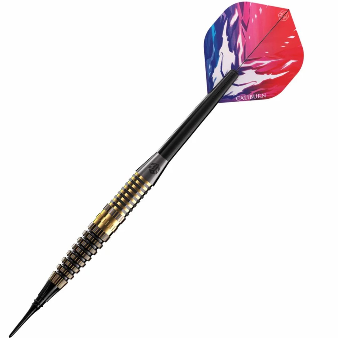 Caliburn Combo Soft Darts to mosiężne rzutki o oszałamiającym wyglądzie. Czarne lufy mają unikalne złote rowki, które nadają rzutce elegancki wygląd. Lufy są w komplecie z nylonowymi uchwytami i pałkami Caliburn.