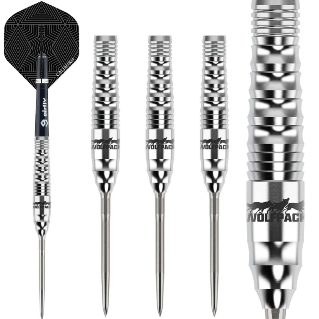 Stalowe rzutki Caliburn Wolfpack to wolframowe rzutki (90% wolframu) z lufami o oryginalnym designie. Lufy są uzupełnione nylonowymi uchwytami i pałkami Caliburn. Rzutki mają system wymiennych punktów Caliburn. W zestawie znajduje się również klucz do wymiany końcówek Caliburn (X1997).
