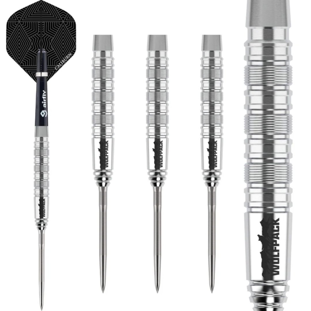 Stalowe rzutki Caliburn Wolfpack to wolframowe rzutki (90% wolframu) z lufami o oryginalnym designie. Lufy są uzupełnione nylonowymi uchwytami i pałkami Caliburn. Rzutki mają system wymiennych punktów Caliburn. W zestawie znajduje się również klucz do wymiany końcówek Caliburn (X1997).