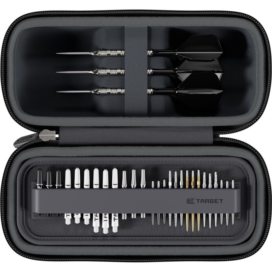Etui na rzutki Target Boa to praktyczne, stylowe etui, które mieści 2 zestawy zmontowanych rzutek. Etui posiada również przegrodę na 4 zestawy uchwytów i 5 zestawów końcówek Swiss Point, a także oczywiście miejsce na eskadry. Etui jest solidne, więc rzutki będą całkowicie bezpieczne. Ulepszona konstrukcja, czysty, nowoczesny wygląd i przemyślany układ sprawiają, że etui jest idealnym dodatkiem dla każdego gracza w rzutki.