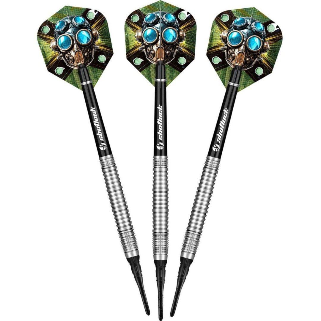 Miękkie rzutki Shot Badlands Krush to rzutki wolframowe (90% wolframu) z lufami o unikalnym designie. Lufy są uzupełnione nylonowymi uchwytami i łatami Shot.