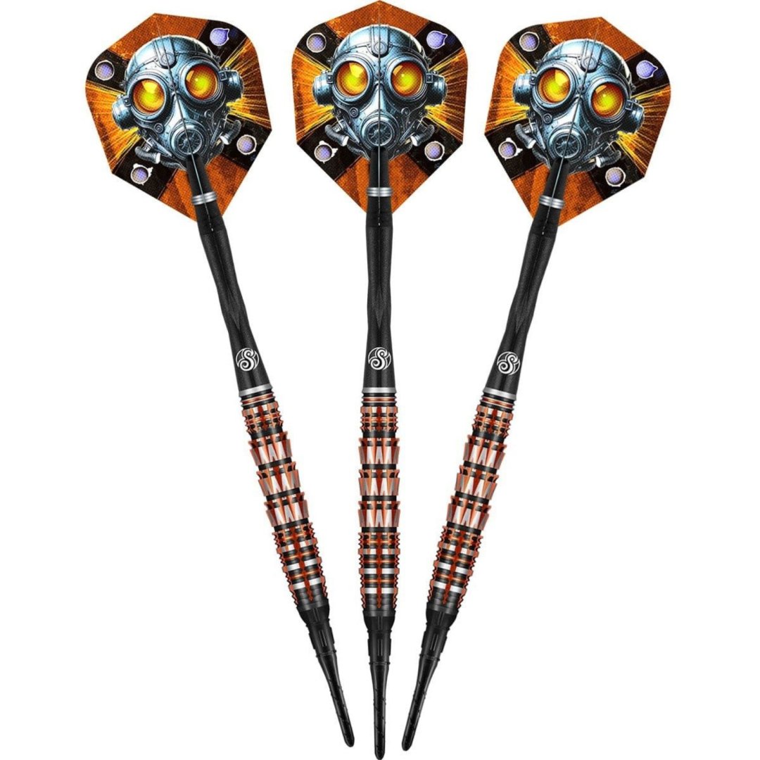 Miękkie rzutki Shot Badlands Rustin to wolframowe rzutki (90% wolframu) o doskonałym designie. Oryginalne beczki z unikalnymi rowkami i w ognistych kolorach z pewnością zrobią na Tobie wrażenie.