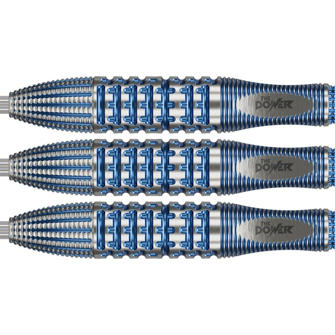 Stalowe lotki wolframowe Phil Taylor Power Gx2 to lotki wolframowe (95% wolframu) o unikalnym designie. Lufa ma kształt torpedy, uchwyt Quattro i rowki podświetlone na niebiesko. Lufy są uzupełnione uchwytami Power Titanium, pałkami Phil Taylor Vapor S i końcówkami Swiss Point.