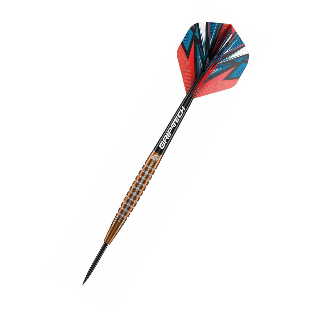 Goat Quarterback Steel Darts to wolframowe rzutki (90% wolframu) o oszałamiającym wyglądzie. Beczki z brązu mają oryginalne rowki, które nadają rzutce wyjątkowy wygląd.