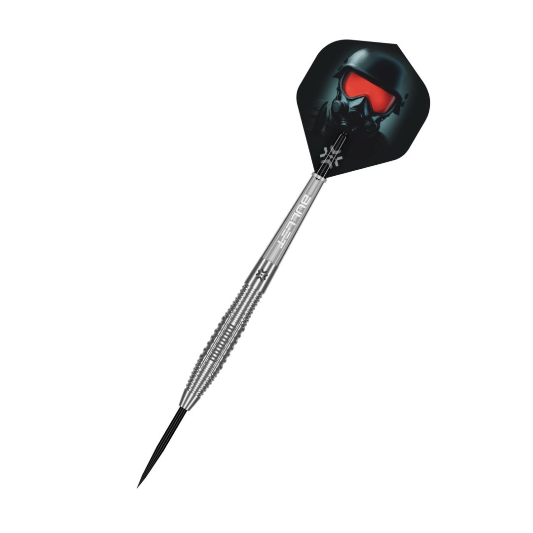 Stalowe rzutki Bullet Ranger to wolframowe rzutki (90% wolframu) z rowkowanymi lufami o eleganckim wyglądzie. Lufy są uzupełnione nylonowymi uchwytami i eskadrami Bullet Ranger.