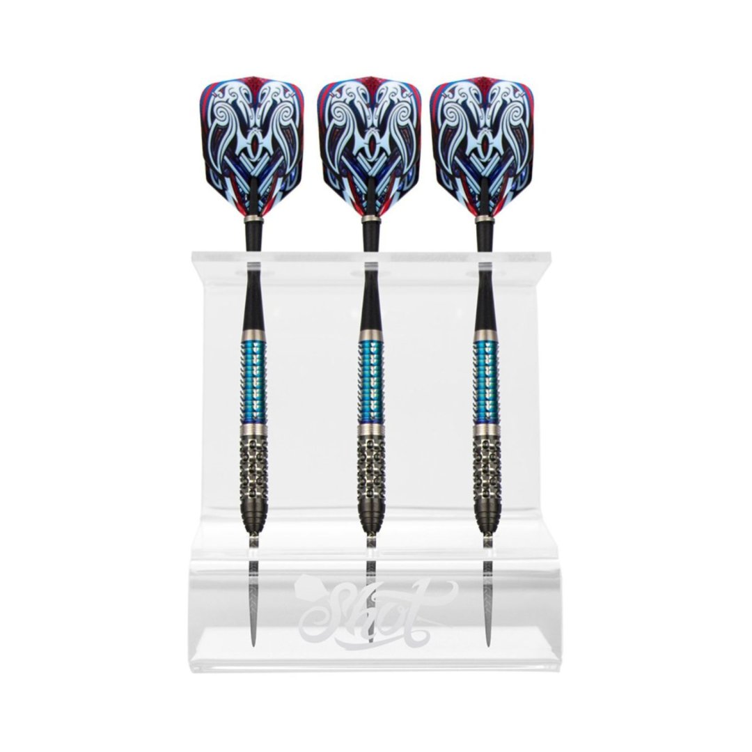 Shot Stand to prosty, ale niesamowity akrylowy stojak na rzutki, który mieści jeden zestaw zmontowanych rzutek. Idealny sposób na wyeksponowanie wyjątkowego zestawu rzutek.