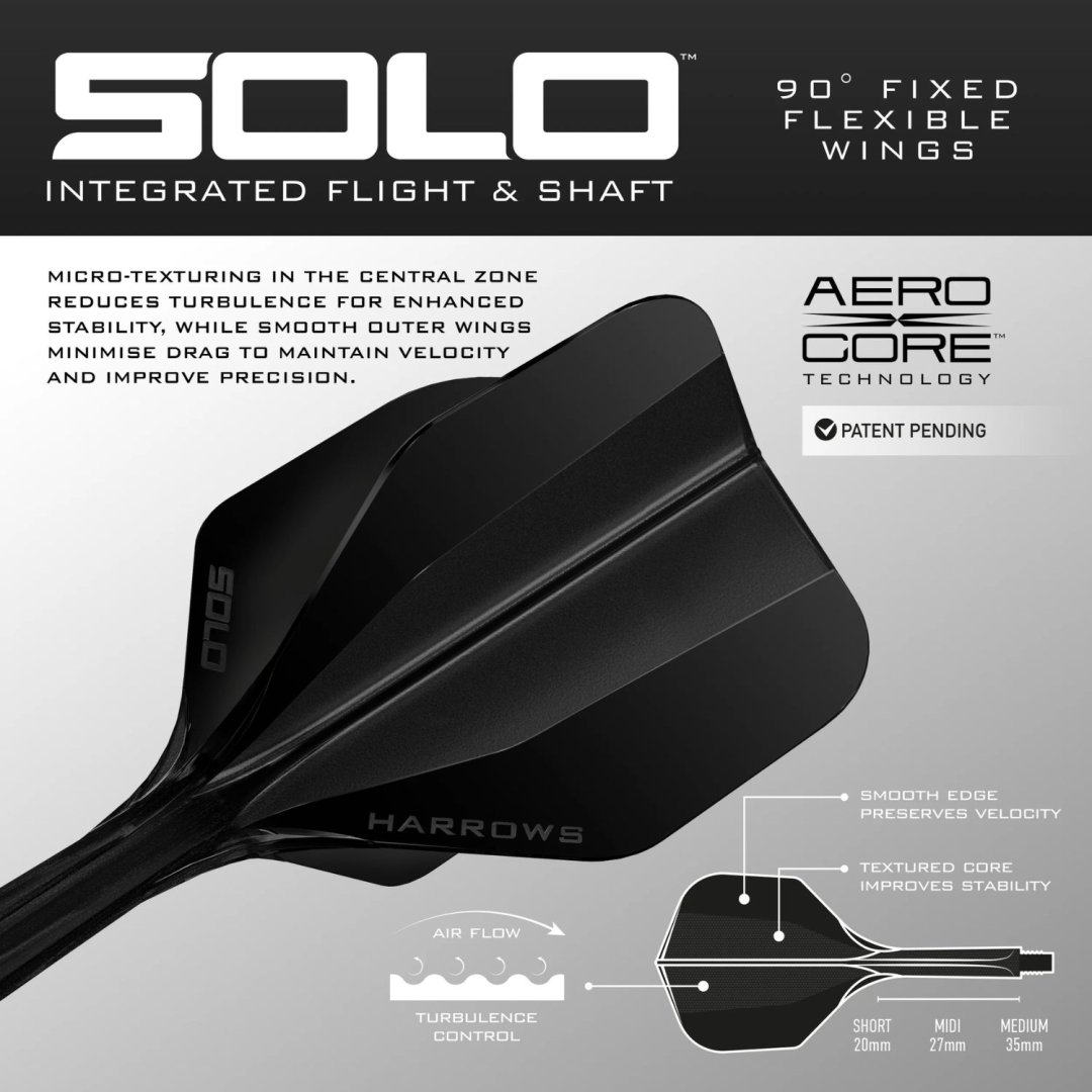 Harrows Solo to system zintegrowanych plastikowych listew z uchwytem, który jest wykonany z wysokiej jakości i trwałych materiałów i utrzymuje idealny kąt 90 stopni podczas gry.