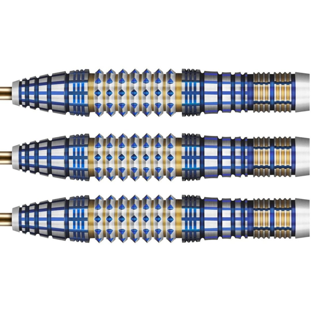 Stalowe rzutki Shot Future Knights Darkstar to wolframowe rzutki (90% wolframu) o oszałamiającym wyglądzie. Beczki mają unikalne rowki w kolorze złotym i niebieskim. Lufy są wyposażone w nylonowe uchwyty i formy do strzał.