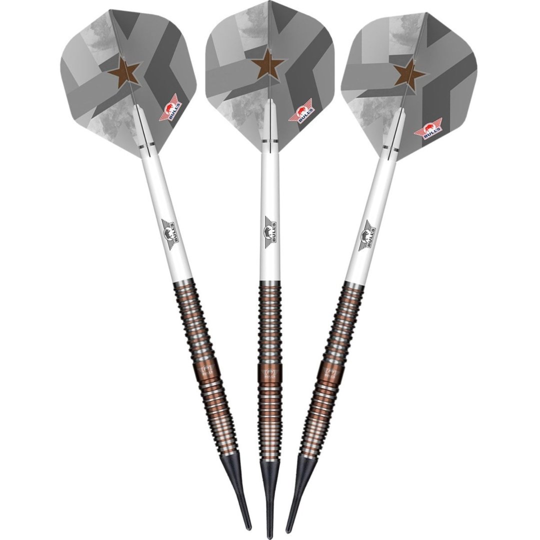 Miękkie lotki Max Hopp to lotki wolframowe (90% wolframu) ze srebrno-brązowymi lufami.