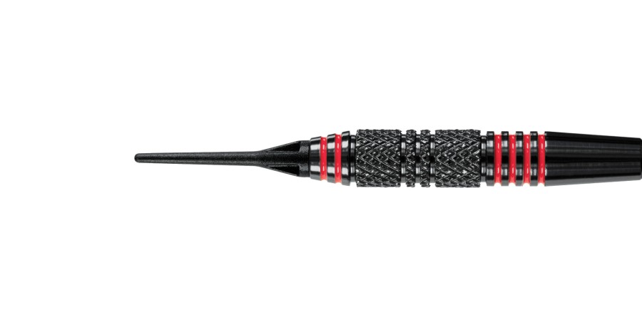 Miękkie rzutki Harrows Pirate Ebonite Coated to atrakcyjne rzutki wykonane z mosiądzu. Mosiężne lufy są podkreślone kolorowymi pierścieniami, rzutki są uzupełnione uchwytami z anodyzowanego aluminium i pałeczkami z hologramem.