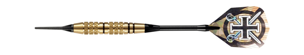 Rzutki Harrows Corsair Brass z miękkiego mosiądzu są doskonałym wyborem dla początkujących graczy. Eleganckie i stylowe beczki są uzupełnione uchwytami z anodyzowanego aluminium i pałkami z hologramem.