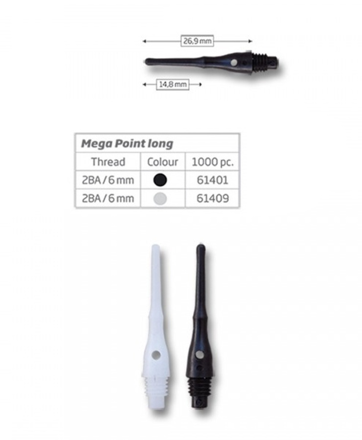Końcówki Bull's Mega Point w wersji długiej to wzmocnione końcówki z otworem ułatwiającym luzowanie i dokręcanie. Wysokiej jakości materiał i specjalny profil, stworzony do użytku profesjonalnego.