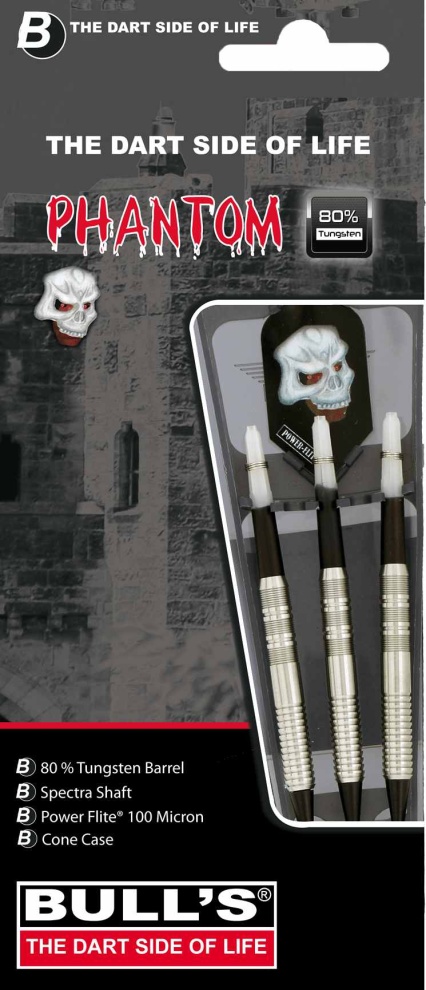 Miękkie rzutki Bull's Phantom to wysokiej jakości wolframowe rzutki o eleganckim wyglądzie. Lufy są wąskie, z ząbkami Shark-Grip z przodu i drobnymi paskami z tyłu. Rzutki dobrze leżą w dłoni. Lufy są uzupełnione uchwytami Spectra i uchwytami Power.