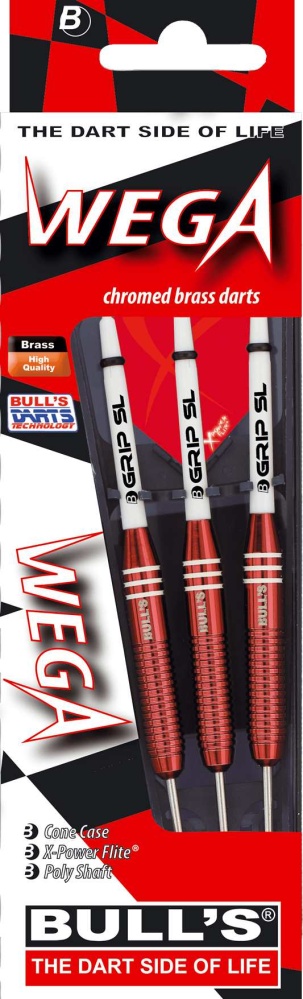 Stalowe rzutki Bull's Wega to rzutki z kolorowym chromowaniem, które nadaje lufie stylowy wygląd. Rowki zapewniają pewny chwyt rzutki. Lufa jest ozdobiona logo Bull's i jest uzupełniona uchwytami B-Grip SL oraz lotkami X-Power Flite. Zapakowane w plastikowe etui.