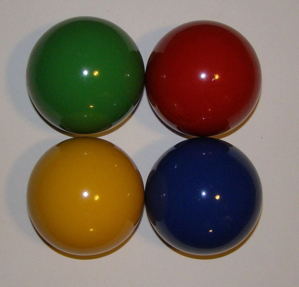Opakowanie zawiera: 4 drewniane kule (średnica 70 mm) - czerwona, żółta, zielona i niebieska